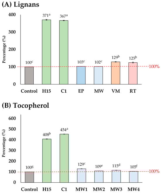 | HCl Treatment | Source | Lignans | Tocopherol | ||||||||