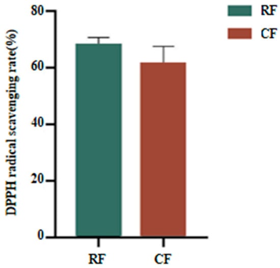 DPPH radical scavenging rate of skin collagen from southern catfish skin under raw food (RF) and cooked food (CF) feeding.