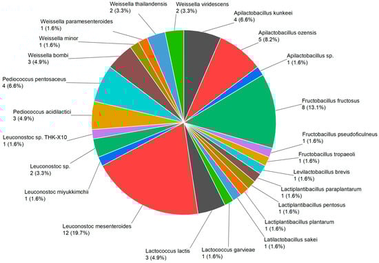 - Saleh, G. Isolation and characterization of unique fructophilic Lactic acid bacteria from different flower sources. Iraqi J. Agric. Sci. 2020, 51, 508–518. [Google Scholar] [CrossRef]