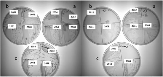 - Poulsen, V.K.; Derkx, P.; Oregaard, G. High-throughput screening for texturing Lactococcus strains. FEMS Microbiol. Lett. 2019, 366, fnz001. [Google Scholar] [CrossRef] [PubMed]