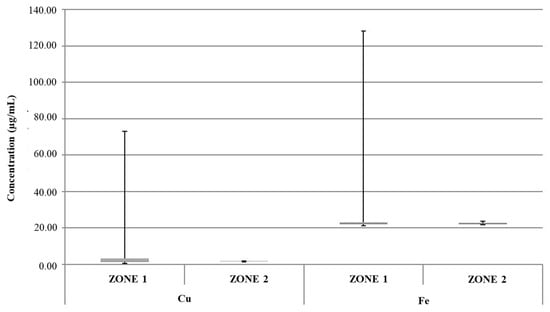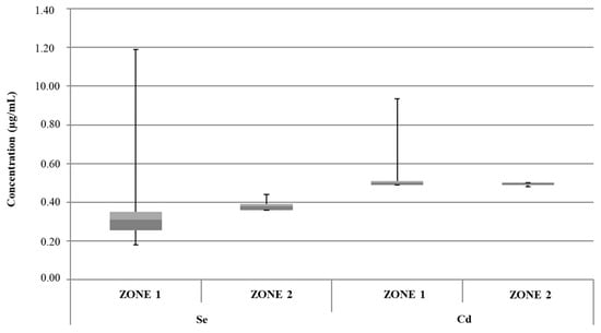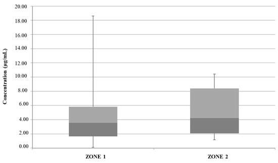 | Mean Value Range (μg/L) | [49] | [47] | [50] | [48] | [46] | Study Zone 1 | Study Zone 2 |