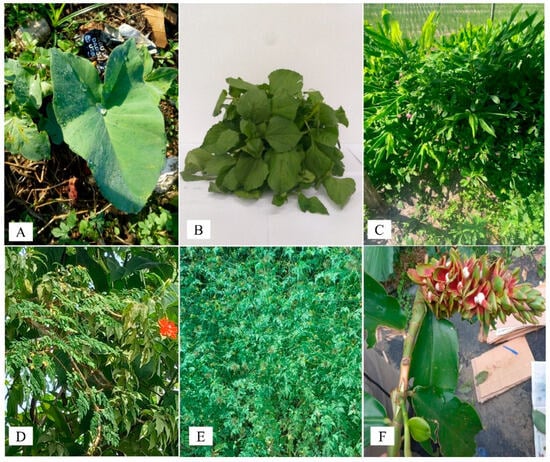 | Composition | Xanthosoma sagittifolium 1 | Acmella oleracea 2 | Talinum triangulare 3 | Pereskia bleo 4 | Costus spiralis 5 |