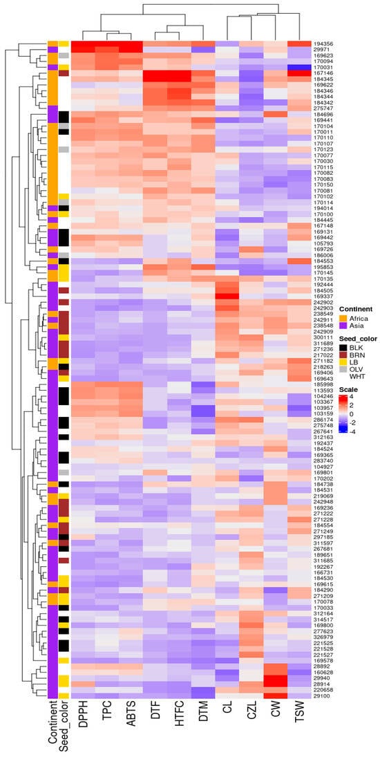 APA StyleOsei, C. Y., Lee, S., Lee, G.-A., Lee, S. H., Yoo, E., Lee, J.-E., Kim, E.-G., & Yang, T.-J. (2024). Evaluation of Agronomic Traits, Total Phenolic Content, and Antioxidant Properties of Sesame Seeds of Different Colors and Origin. Foods, 13(18), 2932. https://doi.org/10.3390/foods13182932