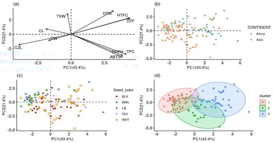3.3. Effects of Origin and Seed Color on Biochemical Parameters