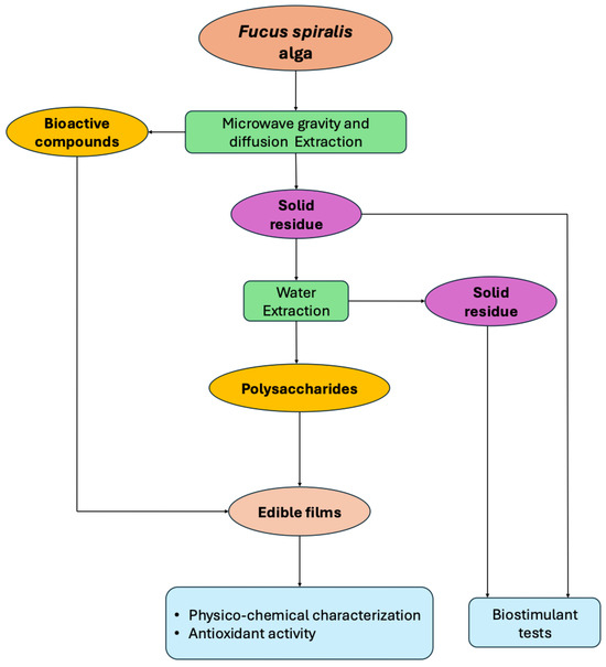 Overview of the experimental procedure for the integral valorization of the Fucus spiralis alga.