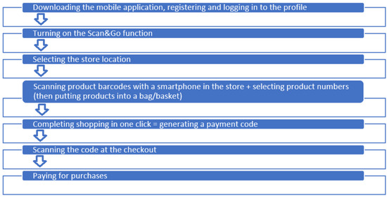 Currently, more and more supermarkets or shops offer such a possibility. Examples of supermarkets around the world are presented in Table 1. Table 1 contains only Internet sources due to the fact that Scan&Go technology is an emerging trend, has not been studied in the academic field, and the aim of this paper is to present current and up-to-date data. This approach eliminates the traditional checkout process. Upon completion, shoppers finalize their purchases at a designated terminal, making payment quickly and leaving the store without delay.