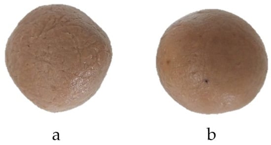 As illustrated in Figure 4, the instrumental setup for the hardness test included a ball probe mounted on a TA.XTplus® Texture Analyzer (Stable Micro Systems Ltd., Godalming, Surrey, UK) (Figure 4a). Figure 4b presents a schematic representation of a typical force–deformation curve for hardness, showing the peak force that indicates the hardness of the sample.