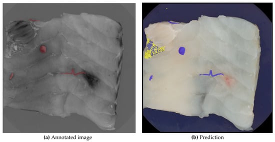 Atlantic cod (Gadus morhua) is among the most important commercial fish species on the world market, and it is one of the most popular species among EU consumers []. For sellers, the quality of cod fillets is of utmost importance as it directly impacts customer satisfaction, repeat business, and the overall reputation of the product. Nematodes, a type of parasitic worm in fish, pose a substantial challenge for the fish processing industry []. Traditional detection and removal of nematodes relies on manual labor, but advancements in computer vision and deep learning have enabled further research into more efficient methods. The anisakis nematodes most commonly found in Atlantic cod are Anisakis simplex sensu stricto and Pseudoterranova decipiens. The infection levels and species diversity of nematodes in Atlantic cod have been shown to correlate with both geographic area and fish size []. Nematodes can be different in size and color, A. simplex is smaller and has clear coloration, while P. decipiens tends to be larger and darker. While consuming a live parasitic nematode can lead to infections, these are typically not a concern for public health if the fish undergo proper cooking or freezing processes that render the parasites noninfectious []. Removing nematodes is also economically important, as the presence of nematodes can impact the market value of fish products due to consumer aversion []. This underscores the importance of nematode removal as a quality assurance issue in fresh fish.
