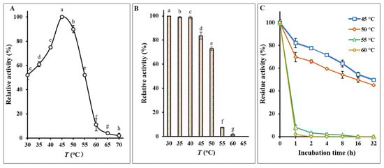 3.2. FTase Tested Is Moderately Heat-Resistant but Sensitive to High Temperatures