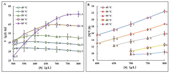 | T (°C) | Vmax [g/(L·h)] | Km (g/L) | Ksi (g/L) |