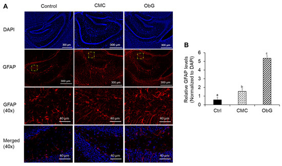 To assess the effect of solubilized oat β-glucans on the offspring of female C57BL6/J mice, 6-week-old mice of similar body weight were acclimated for one week. All animal procedures were conducted in accordance with the guidelines of the Committee on the Care and Use of Laboratory Animals at Kyungpook National University (approval number: 2022-0392). Throughout the study, the mice were provided ad libitum access to a research diet with no fiber content. This zero-fiber diet was formulated by Research Diet (New Brunswick, NJ, USA) based on the “AIN-93 Diet for Laboratory Rodents”, in which microbiota-accessible carbohydrates (cellulose) were replaced with simple carbohydrates or monosaccharides (sucrose and corn starch). The diet was supplemented with solubilized oat β-glucans or carboxymethyl cellulose, both administered orally via drinking water. Three test groups were established: (1) the Control group, which received 50 mg/kg body weight (bw) of carboxymethyl cellulose, (2) the CMC group which received 200 mg/kg bw of carboxymethyl cellulose, and (3) the ObG group, which received 200 mg/kg bw of solubilized oat β-glucans. At 9 weeks of age, females from each group were bred with male mice maintained on the Control group diet. During gestation and lactation, the female mice continued their respective pre-breeding diets.