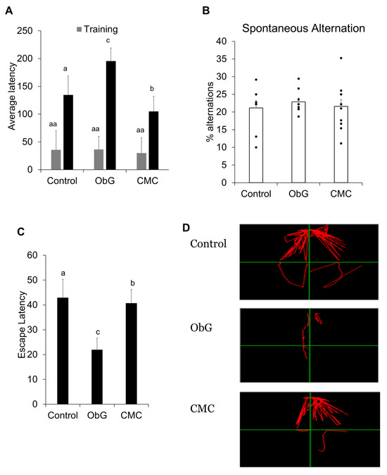 At 4 weeks of age, the pups (n = 8) were separated from the dams and by gender and fed the same diets as their respective mothers. At 8 weeks, these pups were subjected to Y-maze, passive avoidance, and Morris water maze tests over a 3-week period. At 11 weeks, the offspring were euthanized as described in the animal diet section.