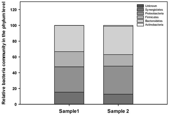 Total DNA was extracted from the in vitro microbiome consortia using an UltraClean Microbial DNA isolation kit (MoBio Laboratories Inc., Greater, CA, USA) according to the manufacturer’s instructions. The quality and quantity of extracted DNA were measured using Eppendorf BioSpectrometer fluorescence. The 16S rRNA genes were amplified by PCR using a primer set targeting the prokaryotic V4–V5 region. The amplified DNA was cleaned, quantified, and barcoded for construction of a DNA library using the Nextera® XT index kit. The barcoded DNA libraries were sequenced using the Illumina Miseq platform (Illumina, San Diego, CA, USA) at MACROGEN (Seoul, Republic of Korea). The raw paired-end 16s rRNA sequences were used for taxonomical analysis according to our previous procedures [14].