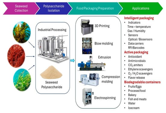 - Carina, D.; Sharma, S.; Jaiswal, A.K.; Jaiswal, S. Seaweeds polysaccharides in active food packaging: A review of recent progress. Trends Food Sci. Technol. 2021, 110, 559–572. [Google Scholar] [CrossRef]