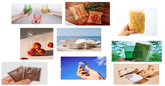 - Nilsen-Nygaard, J.; Fernández, E.N.; Radusin, T.; Rotabakk, B.T.; Sarfraz, J.; Sharmin, N.; Sivertsvik, M.; Sone, I.; Pettersen, M.K. Current status of biobased and biodegradable food packaging materials: Impact on food quality and effect of innovative processing technologies. Compr. Rev. Food Sci. Food Saf. 2021, 20, 1333–1380. [Google Scholar] [CrossRef]