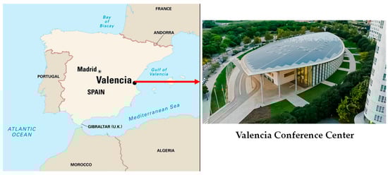 In 2022, the global tourism industry made a remarkable recovery with 969.40 million travelers, doubling the previous year’s figures. However, this still represents a 34% decline from 2019 levels (1463.68 million) as estimated by the World Tourism Organization (UNWTO) [1]. Europe led the way with 61% of global tourists, followed by America (16%) and Asia (7%). Within Europe, Spain, France, Turkey, Germany, and Greece were among the most popular destinations. Tourism significantly contributes to job creation, with Spain being a notable example of a country benefiting from tourism-related employment. Shifting the focus to the noteworthy case of Spain, statistics reveal that in 2022, this country received 71.6 million tourists, which reflected 129.5% more compared to 2021, with the Valencian Community being the fourth autonomous region, behind the Canary Islands, Catalonia, and Andalusia, in terms of tourist reception [2]. The Valencian Community is working on the concept and the connection of tourism focused on five tourism niches: spas/health/wellness [3], culinary/food/wine [4], sports [5], creative/cultural [6], and MICE (Meetings, Incentives, Conventions, and Exhibitions) [7] tourism, with great success to date. It is integrating sustainability principles into each of these five niche concepts [8], aligned with the Sustainable Development Goals (SDGs) [9]. MICE tourism, as a sector of the tourism industry, holds notable economic relevance, which has been steadily growing in recent years [10]. In fact, the global MICE market was valued at USD 876.42 billion in 2022 [11] and Spain is ranked as the fourth country in the world in terms of international meetings held [12]. In the Valencian Community (Spain), the greatest business convention center is known as the Valencia Conference Center (Figure 1). This distinguished venue has been awarded as the World’s Best Convention Center twice, in 2018 and 2010, representing the most prestigious international award from the International Association of Convention Centers, which recognizes excellence in management, facilities, equipment, services, accessibility, and accommodation capacity. Furthermore, the center was also awarded, in 2001, with the first annual prize from the Spanish Federation of Professional Convention Organizers for the quality of its service and facilities provided to the city. The building is a landmark architectural work by the celebrated architect Norman Foster. In 1999, it was awarded Best European Building by the Royal Institute of British Architects, a year after its opening [13]. The strategic and operational planning of the Valencia Conference Center has been focused, since its origins, on sustainability, seeking to guarantee that the interaction between the building and the events held there helps preserve nature [14].