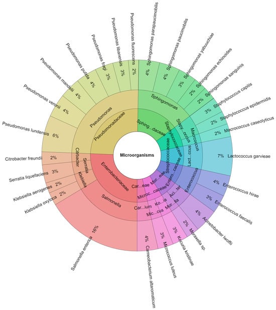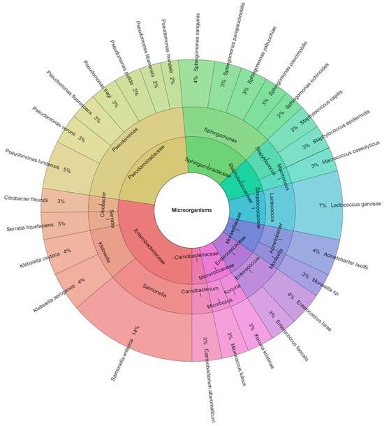 Krona chart: percentage structure of isolated species of microorganisms from rabbit samples at day 1.