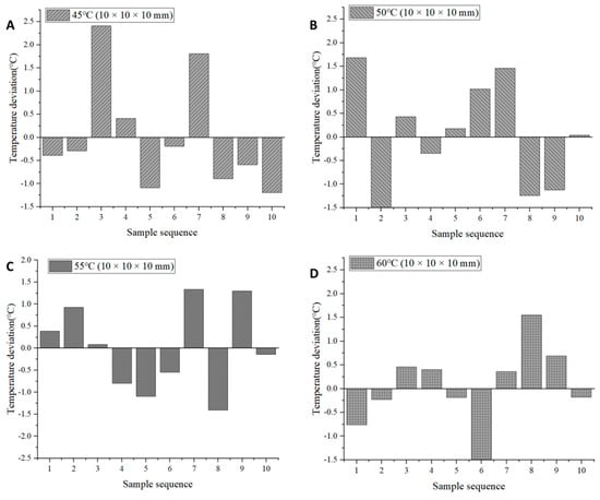 | Samples | Average Temperature (°C) | CV (%) | Average Temperature (°C)−Set Temperature (°C) |