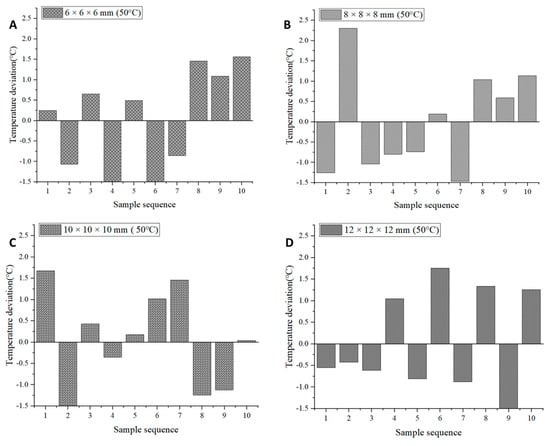 | 12 × 12 × 12 mm (50 °C) | 50.72 | 2.52 | 0.72 |