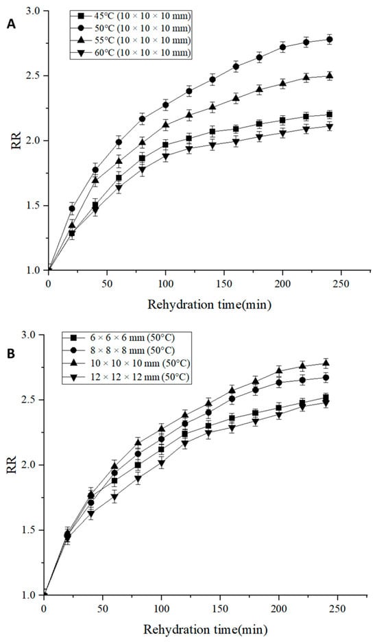 | 8 × 8 × 8 mm (50 °C) | 0.38 ± 0.02 bc | 1.51 ± 0.05 c | 1.52 ± 0.01 b | 4.64 ± 0.02 c |