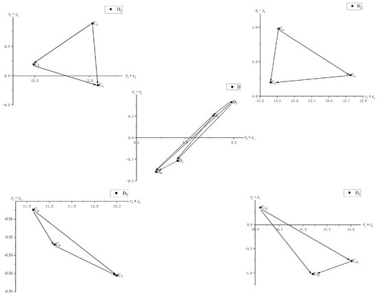 With respect to the identified key dimensions, the research conclusion obtained using the DEMATEL method is consistent with that obtained using the DANP method. To further verify the suitability of the DANP method, we determined whether the key factors obtained using these two methods are mutually consistent. If ri + ci > 13 is used as the criterion, then C1, C3, C4, C5, and C6 are the key factors. However, C3 has a ri − ci value of −0.16567, which is less than zero, so C3 is a result factor and should not be determined as a key factor. Therefore, C1, C4, C5, and C6 can be determined as key factors based on the DEMATEL method, which is consistent with the conclusion obtained using the DANP method.