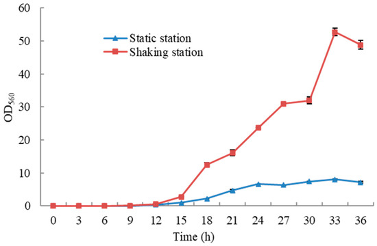 Growth curves of W. anomalus YT312 under shaking and static incubation conditions.