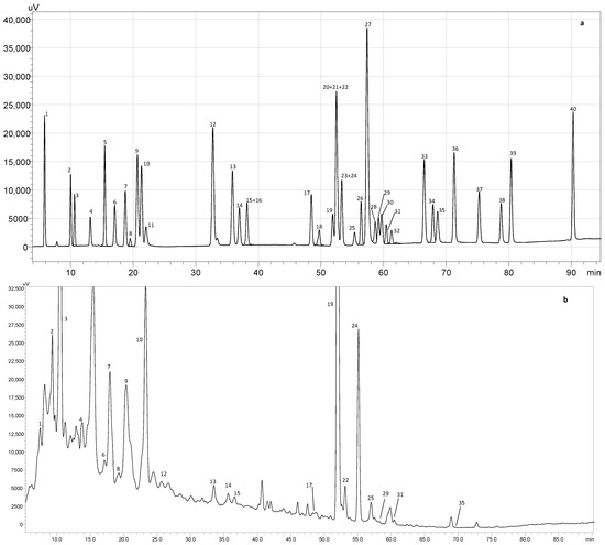 | Cinnamic acid | <LOD | ND c | <LOD | <LOD | <LOD | <LOQ | ND | <LOD | <LOQ | <LOD | <LOD | 0.79 ± 0.04 |