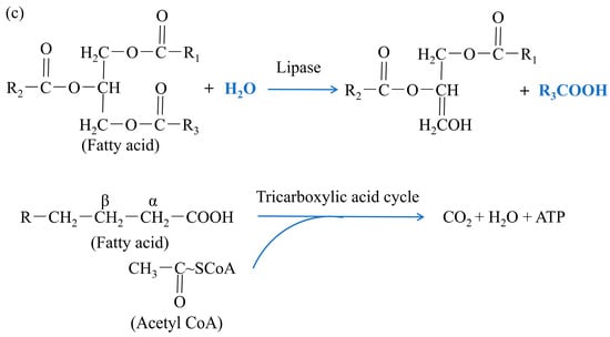 Three mechanisms for oil oxidation: (a) automatic oxidation; (b) photothermal oxidation; and (c) enzymatic hydrolysis and β-oxidation.