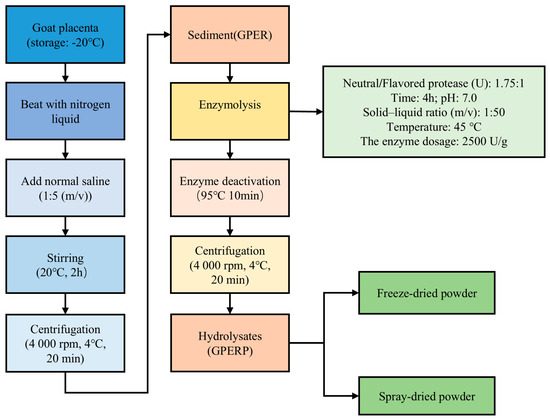 - Hou, Y.N.; Yang, S.R.; Huang, J.H.; Xu, Q.Y.; Liao, A.M.; Zhong, Q.F.; Li, M.X. Nutritional profile and in vitro immunomodulatory activity of protein extract from goat placenta and fermented extraction residual. J. Food Process Eng. 2021, 44, e13576. [Google Scholar] [CrossRef]