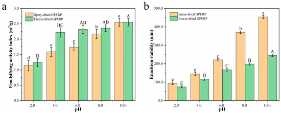 - Hernández-García, S.; Salazar-Montoya, J.A.; Totosaus, A. Emulsifying Properties of Food Proteins Conjugated with Glucose or Lactose by Two Methods (Spray-Drying Or Freeze-Drying). Int. J. Food Prop. 2016, 19, 526–536. [Google Scholar] [CrossRef]