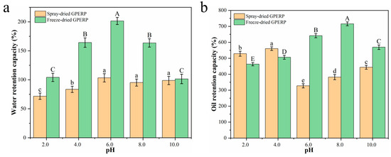 3.2.3. Water Retention Capacity (WRC) and Oil Retention Capacity (ORC)