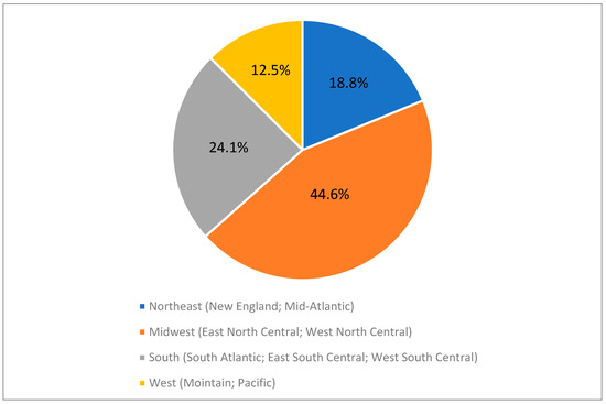 Regional distribution of survey participants’ (n = 415) residences in the United States.