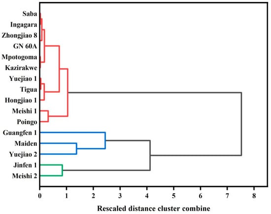 Results of cluster analysis of BRS characteristics from 16 banana cultivars.