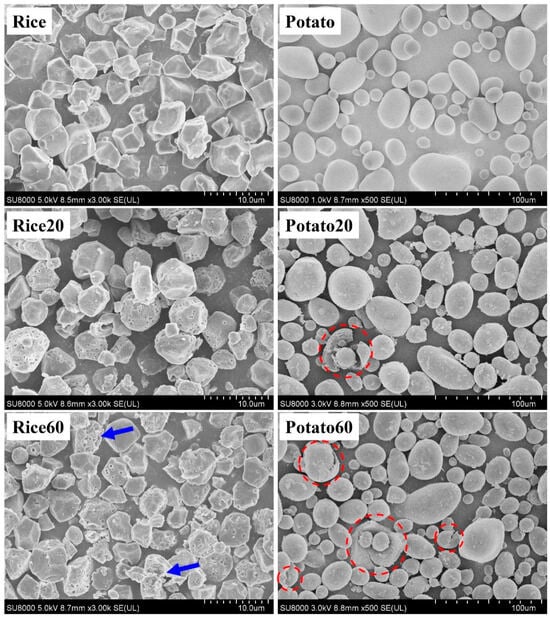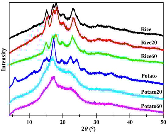 - Xu, X.; Chen, Y.; Luo, Z.; Lu, X. Different variations in structures of A- and B-type starches subjected to microwave treatment and their relationships with digestibility. LWT-Food Sci. Technol. 2019, 99, 179–187. [Google Scholar] [CrossRef]