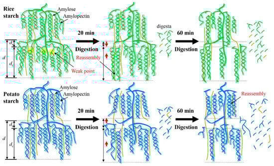 - Teng, A.; Witt, T.; Wang, K.; Li, M.; Hasjim, J. Molecular rearrangement of waxy and normal maize starch granules during in vitro digestion. Carbohydr. Polym. 2016, 139, 10–19. [Google Scholar] [CrossRef] [PubMed]