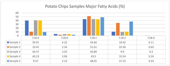 Major fatty acids of potato chips samples.