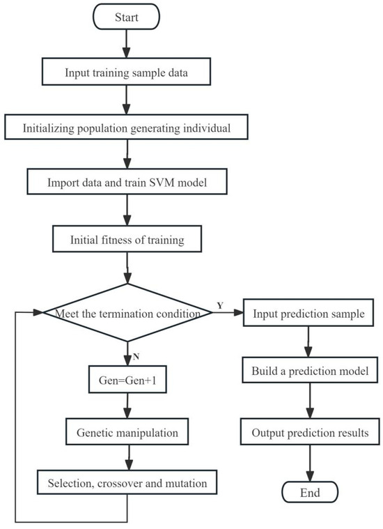 Flow chart of SVM optimized by GA for the grade classification model of camellia seed oil.