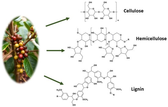 Scientific reports on the composition of cellulose, hemicellulose and lignin of coffee waste.