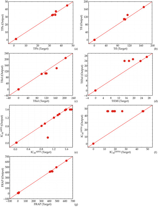 When examining the projection of variables onto the factor plane, notable positive contributions to the first principal component (PC1) were observed: TPh (15.49% based on correlation), Tfl (15.38%), Tflol (15.07%), Tfl3ol (15.15%), and FRAP (15.52%). The most negative influence on the PC1 component was noticed for IC50ABTS (13.31%) and IC50DPPH (10.08%). Conversely, IC50DPPH (89.14%) made significant negative contributions to the second principal component (PC2), as depicted in Figure 2.