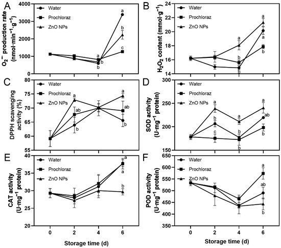 3.3. Effect of ZnO NPs Treatment on ROS-Related Indices of Litchi Fruit