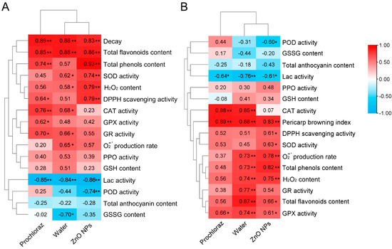 3.5. Correlation and Hierarchical Clustering of Pericarp Browning and Fruit Decay with Antioxidant Indices