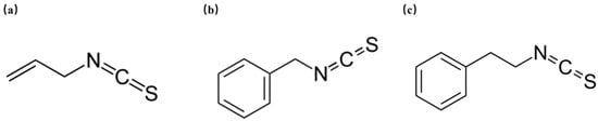 The chemical structures of AITC (a), BITC (b), and PEITC (c).