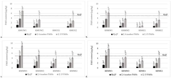 Considering applicable legal requirements, the concentrations of B[a]P and four heavy PAHs in all samples were within the limits established by Commission Regulation (EU) No. 915/2023 [20].