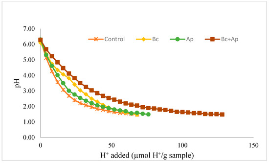 Buffer capacity was evaluated using the methodology of Mennah-Govela et al. [27]. For this, pasta (100 g) was cooked in 200 mL of distilled water for 8 min (enough for “al dente”), and then, the pasta was drained and pureed with a blender. Twenty grams of pureed pasta were placed in beakers of enough length to allow the entrance of the pH lector tip (Thermo Scientific, Waltham, MA, USA. ORION STAR A211). The initial pH was measured and recorded in three locations, and then, aliquots of 0.5–1 mL of HCl 0.16 M were added and mixed with the sample. After adding each HCl aliquot and mixing, the pH was measured again in three locations until reaching a final pH of 1.5. All pureed samples were measured in triplicate.