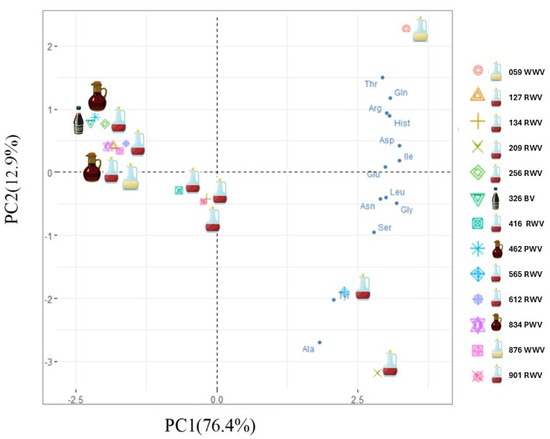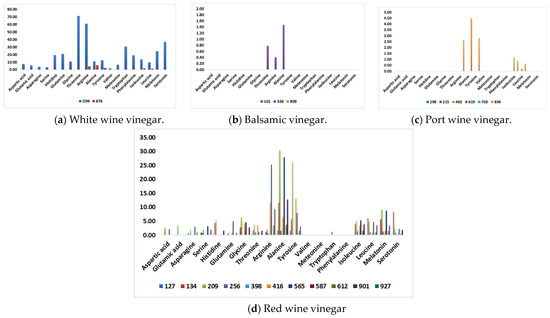 - Del Signore, A.; Stancher, B.; Calabrese, M. Characterisation of Balsamic vinegars by amino acid content using a multivariate statistical approach. Ital. J. Food Sci. 2000, 12, 317–332. [Google Scholar]