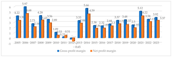 Gross and net profit margin of fat industry in Poland (%). Source: own elaboration based on [38].