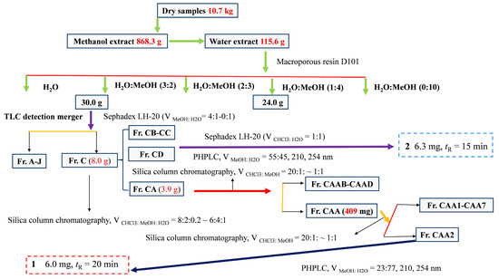Diagram for the isolation and purification of compounds 1 and 2.