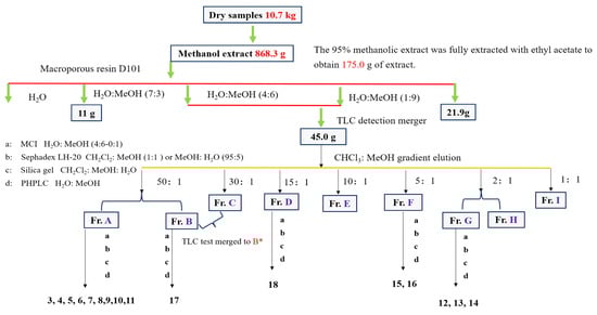 Diagram for the isolation and purification of compounds 3–18.
