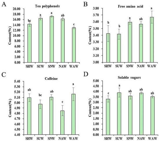 3.2. Impact of the Five Withering Methods on the Biochemical Components of Congou Black Tea
