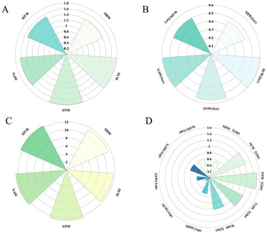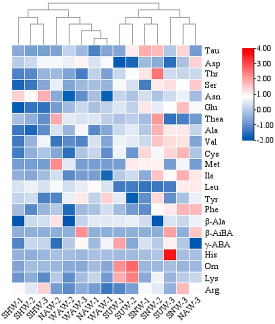 3.3. Effects of Different Withering Methods on Amino Acid Composition and Content
